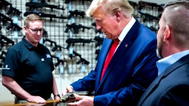 Donald Trump, a punto de adquirir una pistola en un acto de campaña: "¡Guau! Quiero comprar una"