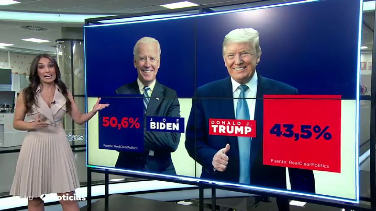 Solo faltan seis días para las elecciones en Estados Unidos y Donald Trump está recortando distancias en las encuestas. Los sondeos siguen dando ganador a Biden (50,6%), pero Trump (43,5%) ha subido en intención de voto.