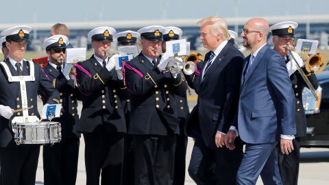El presidente de Estados Unidos llegó procedente de Roma en su Air Force One. Donald Trump. Dentro de su agenda, ha visitado el Palacio Real de Bruselas, donde ha sido recibido por el rey Felipe y la reina Matilde y, a continuación, ha celebrado una sesión de trabajo en el mismo lugar con el primer ministro belga, Charles Michel.