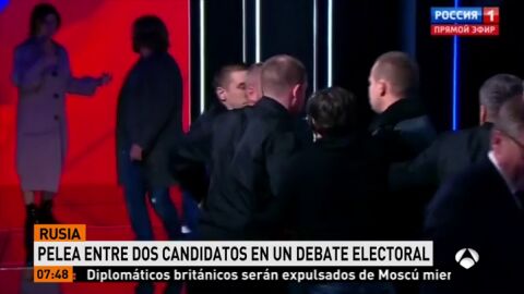 Dos candidatos a la Presidencia de Rusia se pelean durante un debate en televisión