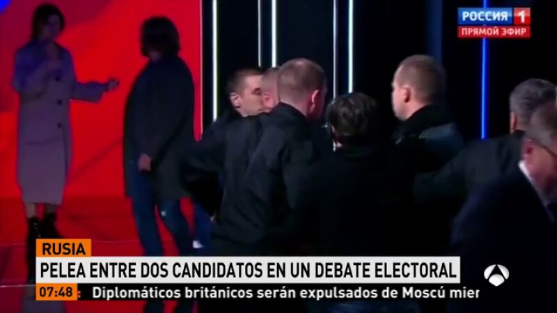 A dos días de las elecciones presidenciales en Rusia, dos candidatos a la Presidencia se enfrentan tras una discusión en el debate final. Finalmente, los agentes de seguridad tuvieron que sacar a uno de ellos de plató.