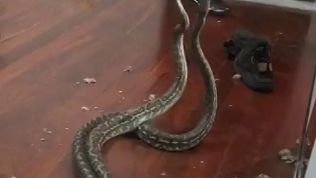Dos serpientes rompen el techo de un dormitorio y caen al suelo tras una pelea