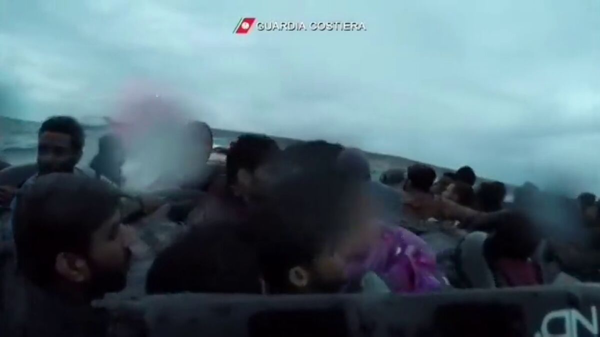 La guardia costera italiana ha distribuido las estremecedoras imágenes del rescate de una niña de menos de un año y de otros menores durante el hundimiento de una patera. Decenas de personas esperaban en el agua. Al menos veinte han desaparecido.
