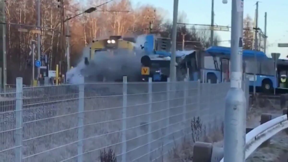 Un tren se ha llevado por delante a un autobús que se había quedado atrapado en las vías en el sur de Suecia dejando estas impactantes imágenes. Antes de la colisión, los pasajeros del autobús pudieron ser evacuados, pero el tren acabó descarrilando, dejando al menos 3 heridos.