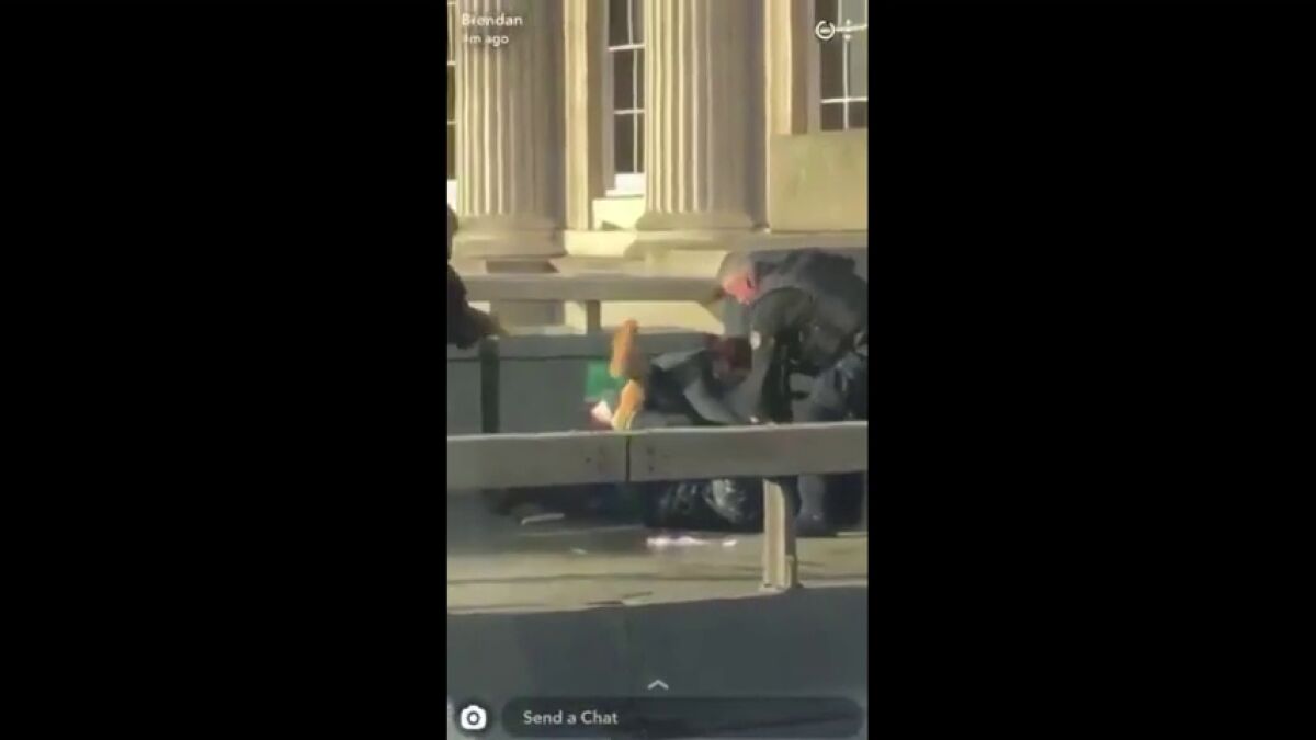 Este es el vídeo del momento en el que la Policía de Londres ha abatido a un sujeto armado con un cuchillo en el puente de Londres. El sujeto está detenido.