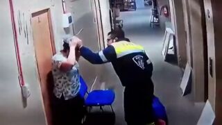 El paramédico tira del pelo, zarandea y propina una fuerte patada en el vientre a su mujer embarazada durante una discusión que captaron las cámaras de seguridad del centro sanitario en el que se encontraban.
