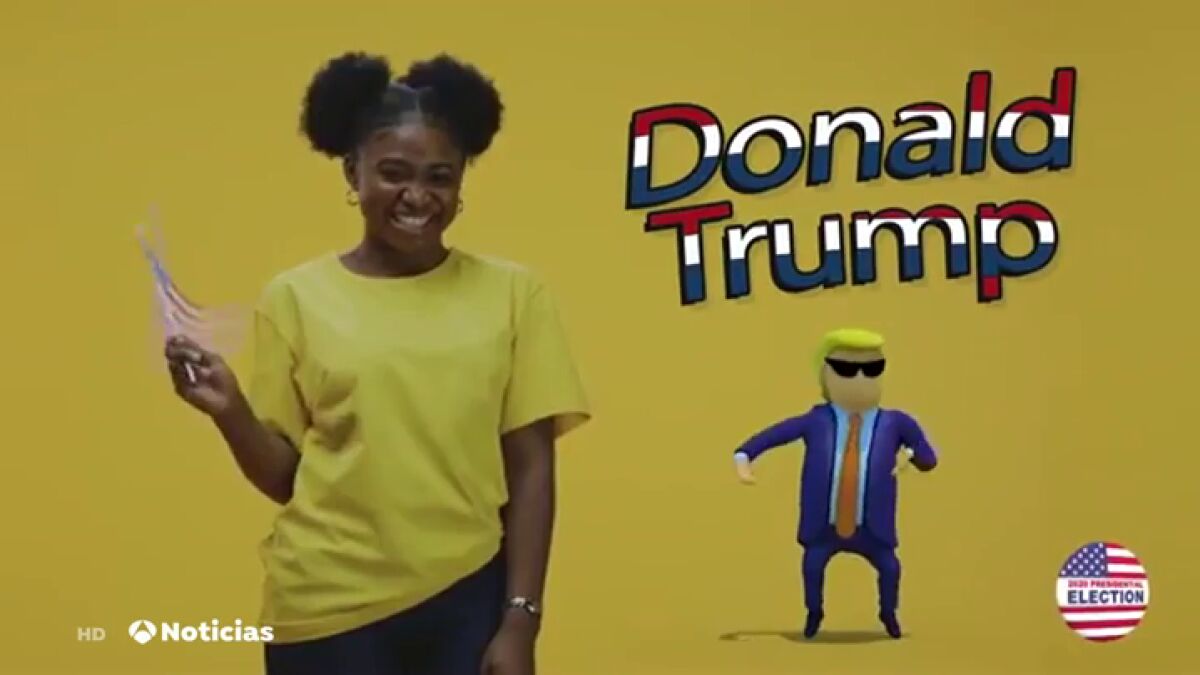 Donald Trump baila a ritmo de salsa y mueve sus caderas en un dibujo animado entre un grupo de latinos. Con este vídeo piden a los hispanos el voto para el actual presidente de los Estados Unidos por el que hacen campaña en las elecciones de este año 2020.