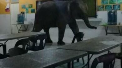 Un elefante causa el pánico al irrumpir en una escuela de Malasia