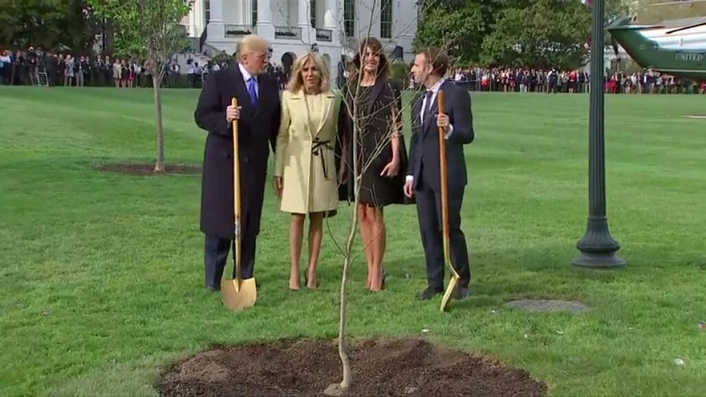 Es la primera visita de Estado que recibe Donald Trump. El presidente de Francia, Emmanuele Macron le ha regalado un roble que han plantado en el jardín de la Casa Blanca.