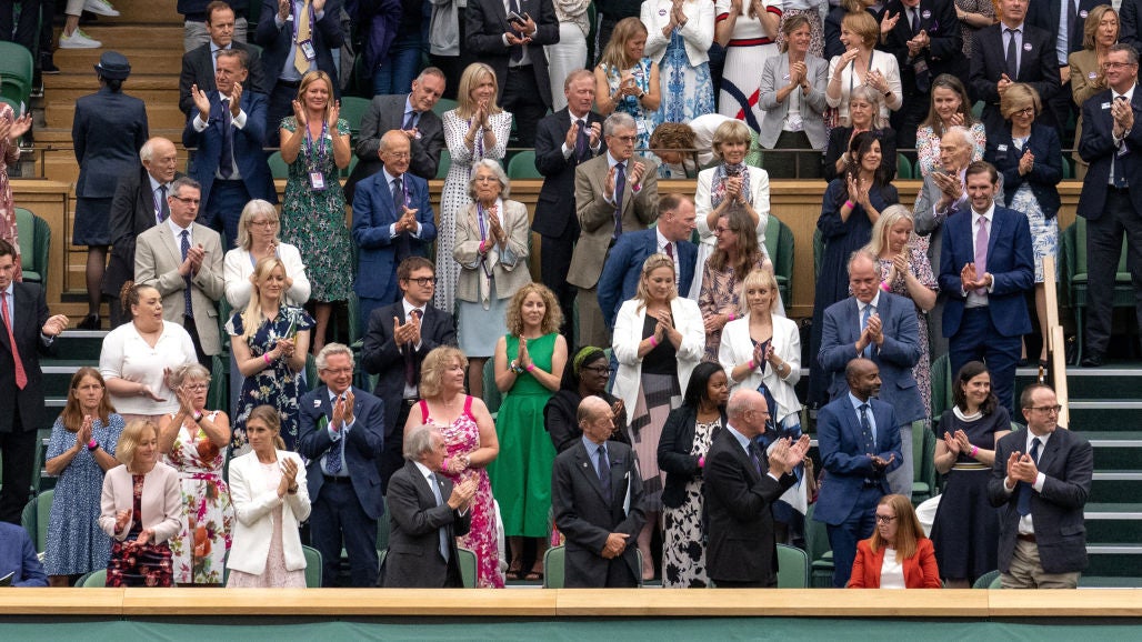 El público de Wimbledon también dedicó una ovación a los los miembros del Servicio Nacional de Salud británico invitados al partido y que han sido claves en la lucha contra el coronavirus y la campaña de vacunación.