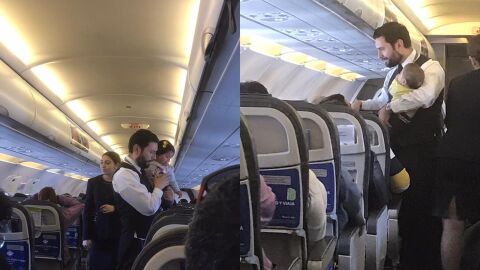 El emotivo gesto de un azafato con un bebé en pleno vuelo que se ha vuelto viral