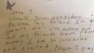 La anciana quiso acercarse a su vecina para confesarle que se sentía muy sola y quería preguntarle si podían ser amigas. En la nota, la mujer decía: "Te gustaría ser mi amiga. Tengo 90 años y vivo sola. Todos mis amigos han fallecido. Estoy tan sola y asustada. Rezo por tener a alguien", decía la nota escrita a mano, tal y como recoge el medio People.