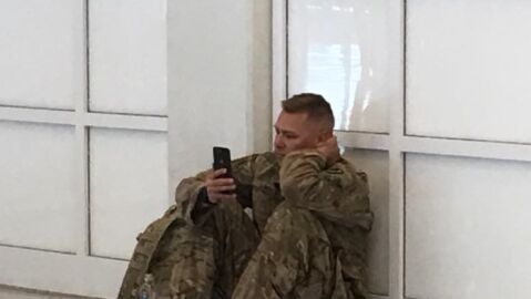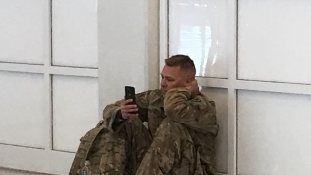 Una mujer que viajaba con el soldado lo grabó en vídeo de él mientras observaba el nacimiento. "Este soldado del ejército estaba en mi vuelo retrasado a casa. Tuvo que ver el nacimiento de su hija en FaceTime. Él estaba llorando y nuestros corazones se estaban rompiendo. Cuando escuchamos llorar al bebé, todos nos emocionamos por él", escribía la pasajera en su Facebook.