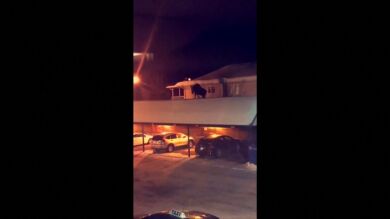 El vídeo capturado por el residente de Prince George, Sandeep Pahal, muestra al alce en la parte superior de una cochera mientras avanza y parece intentar encontrar un camino para bajar.