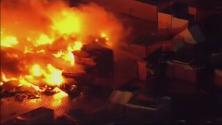 Espectacular incendio en un edificio en construcción en Filadelfia