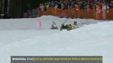 Centenares de turistas alemanes han acudido este fin de semana a una de las carreras más divertidas que se puede ver en el invierno. Más de un kilómetro y medio con 32 participantes, por pistas forestales en las que el tiempo que se tarda en realizar la prueba es lo de menos. Al final del recorrido se pueden ver grandes saltos que suelen acabar con caídas en la nieve.