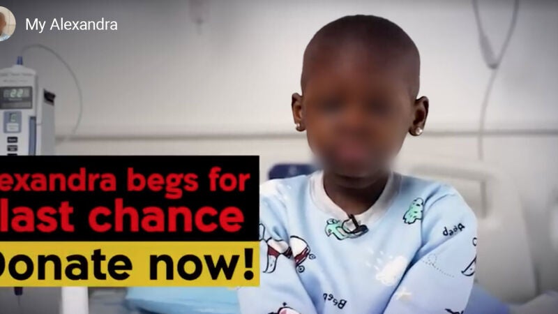 En el vídeo se pide a los espectadores que donen para el tratamiento contra el cáncer de la niña a través de una página de recaudación de fondos de donaciones vinculada. Si desea salvar a “Alexandra” (o Ariela, Ksenia o Barbara, según dice el video), puede contribuir de inmediato. El conmovedor y falso vídeo ya ha logrado recaudar más de 640.000 de dólares.
