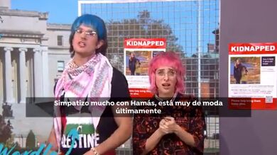 "Simpatizo mucho con Hamás, está muy de moda últimamente", se les puede escuchar mientras imitan con pañuelos y banderas palestinas.