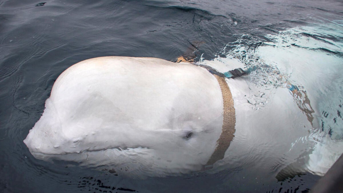 Un grupo de expertos marinos en Noruega creen que han encontrado una ballena blanca que ha sido entrenada por la marina rusa como parte de un programa para usar mamíferos submarinos como una fuerza de operaciones especiales. Los pescadores, que se encuentran en aguas cercanas al pequeño pueblo pesquero noruego de Inga, informaron la semana pasada de que una ballena beluga blanca que llevaba un extraño arnés había comenzado a hostigar a sus barcos de pesca.