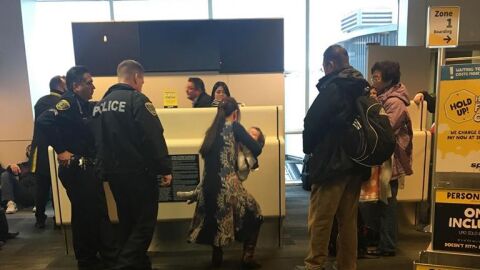 Los asistentes de vuelo se reunieron en torno a ella haciendo que dejara de alimentar a su hijo, que comenzó a llorar. Fue entonces cuando la tripulación le dijo que se bajara del avión.