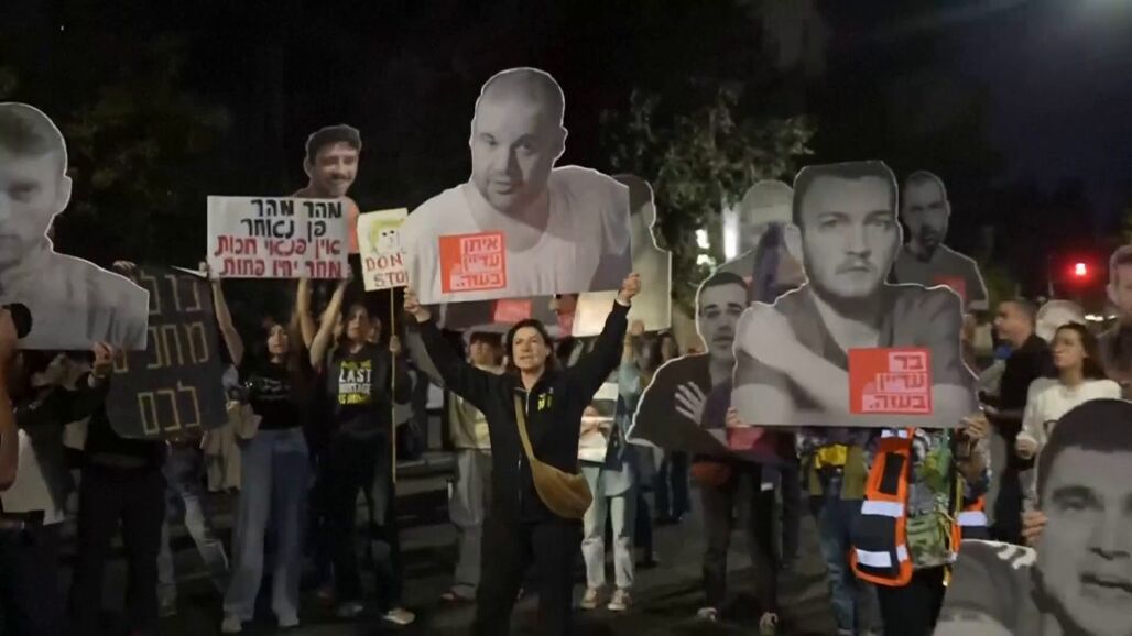 Decenas de personas se manifestaban en Jerusalén con carteles e imágenes de los secuestrados con mensajes directos a Netanyahu.