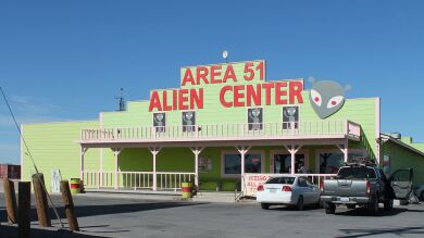 Sin embargo, antes de intentar entrar, es recomendable leer los carteles. El primero de ellos avisa: "Warning". E, importante, hay que leer la letra pequeña: "Use of Deadly Force Authorized" ("Uso de fuerza mortal autorizado"), por lo que lo más recomendable para garantizar la propia seguridad es volver a A'Le'Inn y conformarse con una "hamburguesa con salsa alien", ver las fotografías que cuelgan de sus paredes y comprar un recuerdo del marciano que no conseguiste ver.