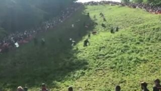 Los participantes tienen que tirarse colina abajo con el objetivo de atrapar un queso de cuatro kilos que rueda por la empinada ladera.