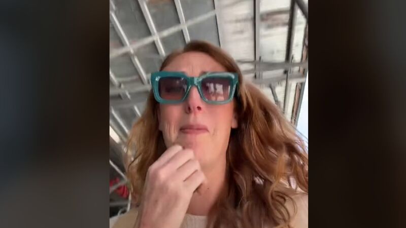 De camino a casa, la joven llora y también lo inmortaliza. Una voz en off acompaña al vídeo: "Me acaban de despedir. Aquí estoy yo, llorando, porque perdí mi empleo. Volví a casa", locuta riéndose.