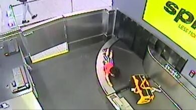 Graban a un niño siendo arrastrado por una cinta transportadora de maletas en el aeropuerto de Atlanta