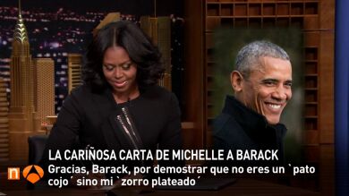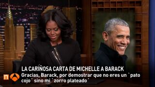 Michelle Obama, en su última aparición como primera dama en un programa de televisión, contestó públicamente a las cariñosas palabras que su marido le dedicó en su discurso de despedida. Y lo hizo con una nota escrita en la que le daba las gracias por demostrar que no es un pato cojo, como se llama a los presidentes antes de abandonar la Casa Blanca.