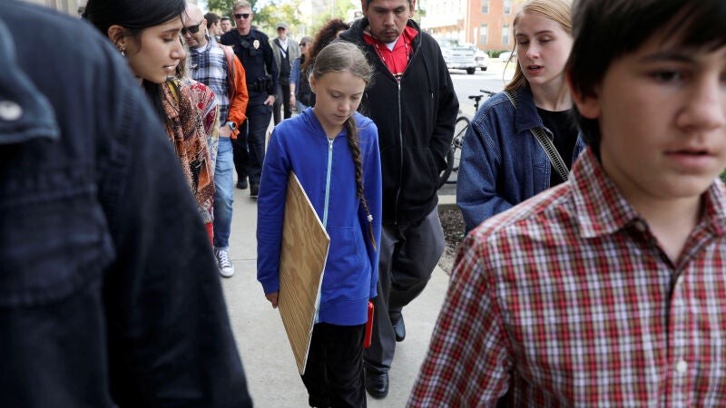 La activista Greta Thunberg ha aparecido por sorpresa en una protesta contra en cambio climático. La joven activista sueca ha decidido secundar una iniciativa de un muchacho de 14 años en Iowa, Estados Unidos.