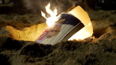 En la playa en Barcelona bailan imitando el ya mítico baile de Donald Trump y queman la imagen de Lariyani.