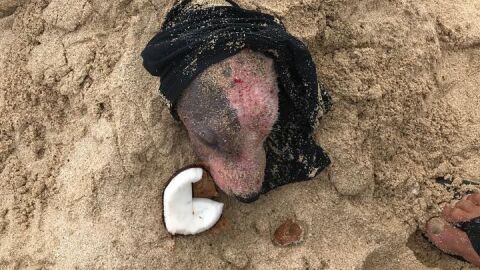 Un hombre ha rescatado a una perrita que fue enterrado vivo en una playa de O'ahu, Hawai. Las imágenes, compartidas por organización de rescate de animales PAWS of Hawaii, muestran al can con el cuerpo totalmente quemado e inflamado después de haber sido enterrado, con solo su cabeza sobresaliendo de la arena.