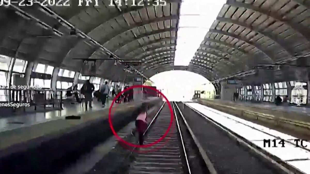 Un hombre cae a las vías del tren y su rápida actuación le libra de la muerte