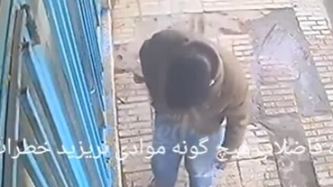 Las imágenes, que han sido grabadas en Teherán, muestran como justo después de tirar el cigarro y de que este se colara por un agujero, se produjera una explosión.