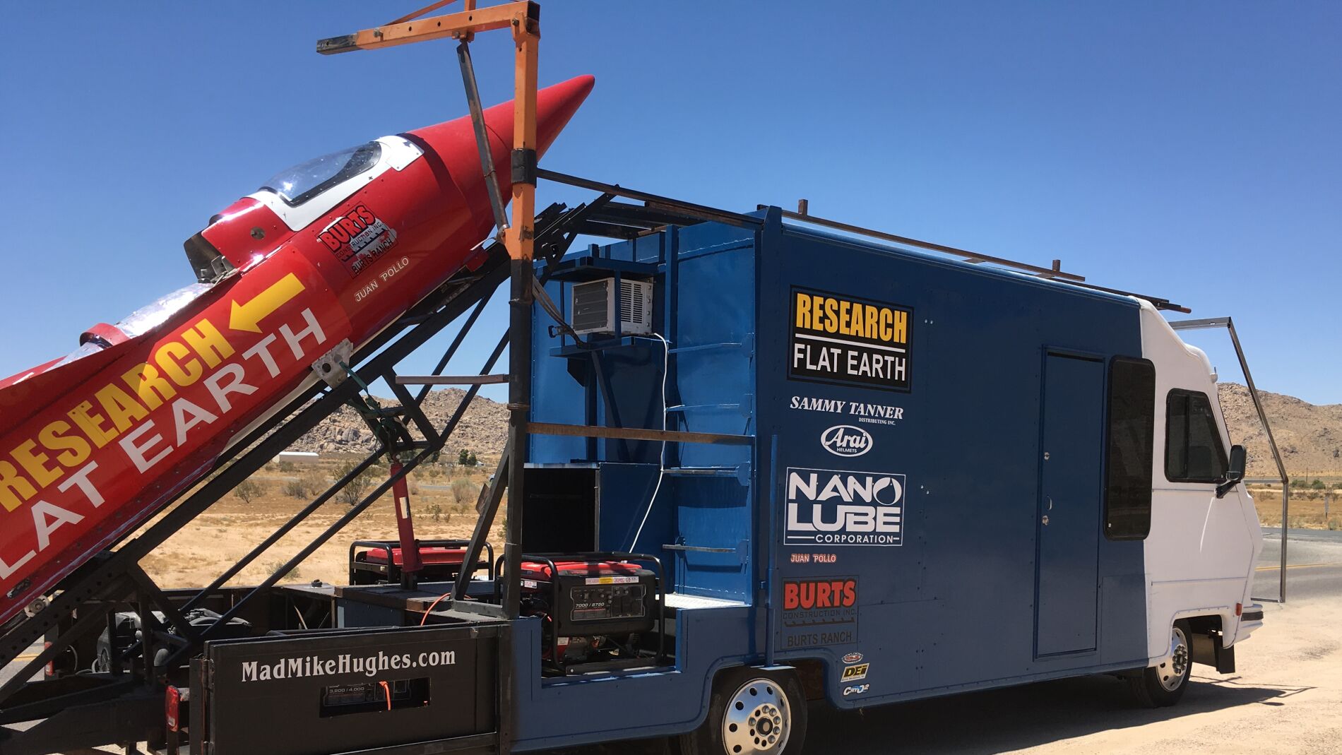 Mike Hughes asegura que su viaje marcará la primera fase de su ambicioso programa espacial de la Tierra plana. Intentará lanzarse a a 550 metros de altura en un cohete que ha construido con chatarra, desde donde espera fotografiar la prueba de que la Tierra no es redonda.
