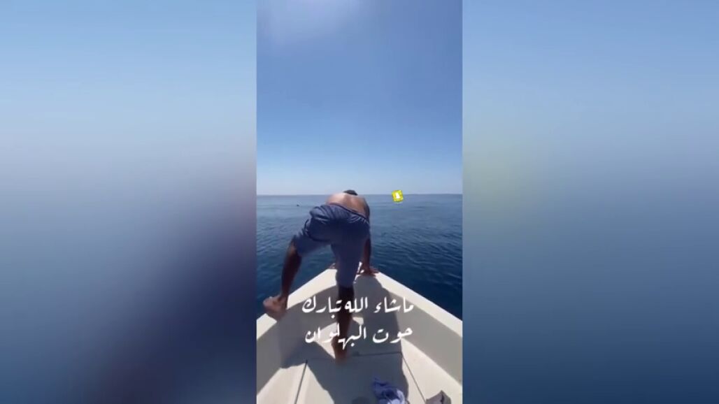 Abu Wadih es un marinero con experiencia en el campo de la pesca y de la vida marina. La cámara lo captó durante un viaje acariciando a un tiburón o ballena payaso en Arabia Saudita. El vídeo se ha vuelto viral.
