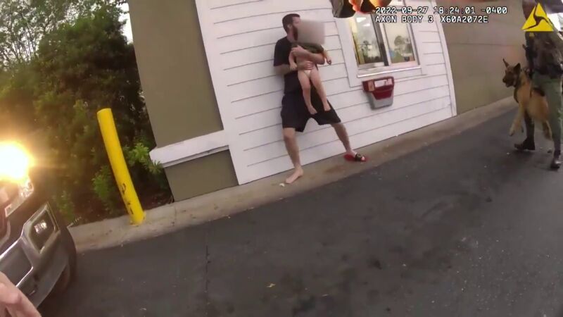 En la impactante secuencia, en el exterior de un restaurante de comida rápida, se puede ver como el hombre pone a su hijo como escudo para evitar que los agentes puedan neutralizarlo con las pistolas taser.