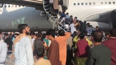 Se agolpan en las pistas, se agarran a las ruedas y trepan unos sobre otros para acceder a los aviones de evacuación. El primer canal de noticias 24 horas de Afganistán ha informado de que varias personas han caído desde un avión que había despegado.