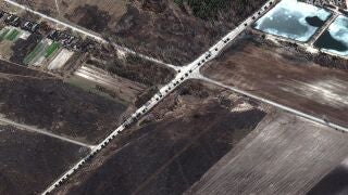 Las imágenes del convoy de vehículos militares de Rusia las ha captado una empresa de satélite americana y podría ser prueba de la ofensiva total que planea Rusia contra la capital de Ucrania,. Kiev.