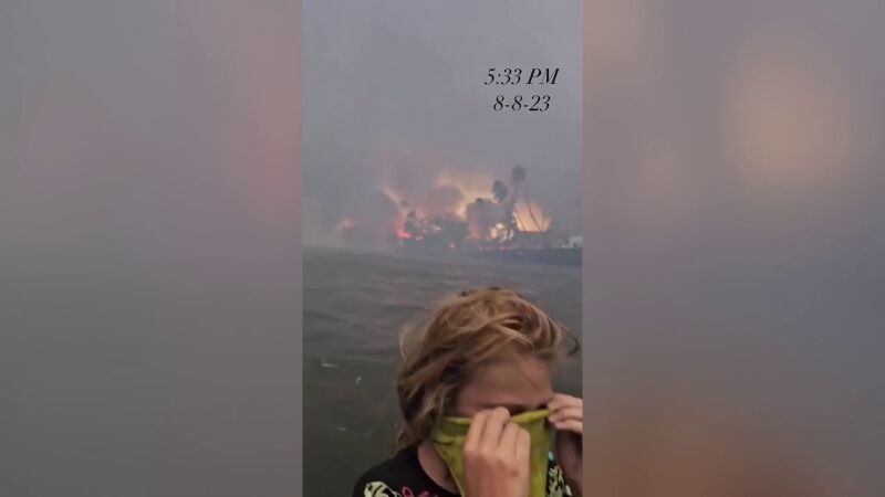 Las imágenes del terror en Hawái: una familia se lanza al agua rodeados por las llamas