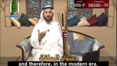 En el vídeo explica con varios palos en las manos "cómo se educa realmente a las esposas"."Los organizadores de la feria presentan al imán, Jasem Al Mutawa, como "experto en mediación familiar y en educación de los niños".