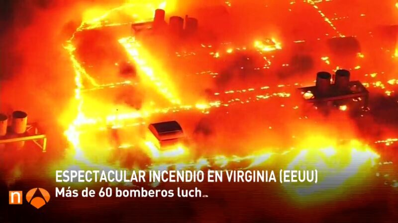 Incendio de grandes dimensiones en una planta de reciclaje de Virginia, en Estados Unidos