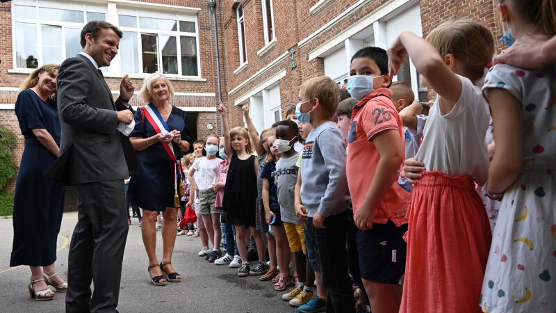 Macron visitaba el centro en la localidad Poix de Picardie, dentro de un recorrido por la región del norte para promover la lectura, cuando uno de los niños alzó la mano para hacerle una pregunta. "¿Qué tal la torta que te dieron?", le preguntó el pequeño de forma directa.