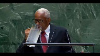 Incómodo pero divertido momento en la asamblea de la ONU: el representante de Haití bebe agua... ¡directamente de la jarra!