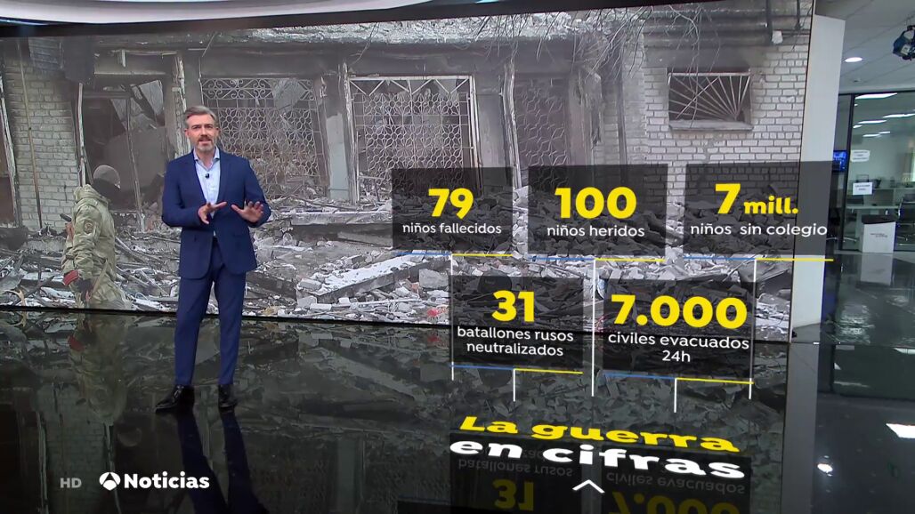 Hasta el momento, más de 280 instituciones educativas han sido destruidas, 9 de ellas de forma total. En la región de Donetsk, en el este del país, 110 instituciones educativas resultaron dañadas, en la región de Sumy, también en el este, fueron afectadas 28, y en Kiev, 17, además de una decena de centros médicos para menores. Desde que comenzó la guerra más de 7 millones niños se encuentran sin colegio.