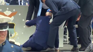 Joe Biden cae al suelo durante un acto de graduación de las Fuerzas Armadas de EEUU