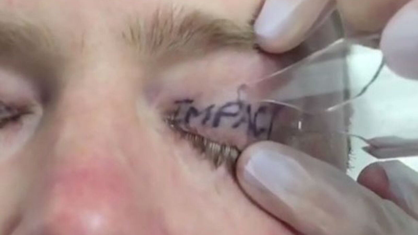 Un joven se despierta con los párpados tatuados después de una larga fiesta