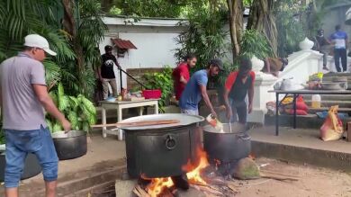 Barbacoas y siestas en la casa del presidente de Sri Lanka. Así pasan los días los participantes en las protestas.