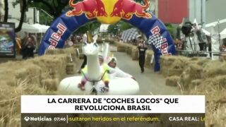 Una divertida carrera de coches en Sao Paulo, Brasil, ha captado la atención de miles de personas que se han congregado para presenciar los vehículos más originales del momento.